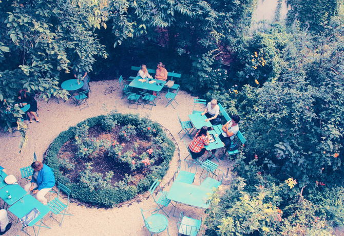 The circular garden drenched in flowers and greenery is a perfect spot to take in your surroundings and eat something sweet from the glassed greenhouse café.