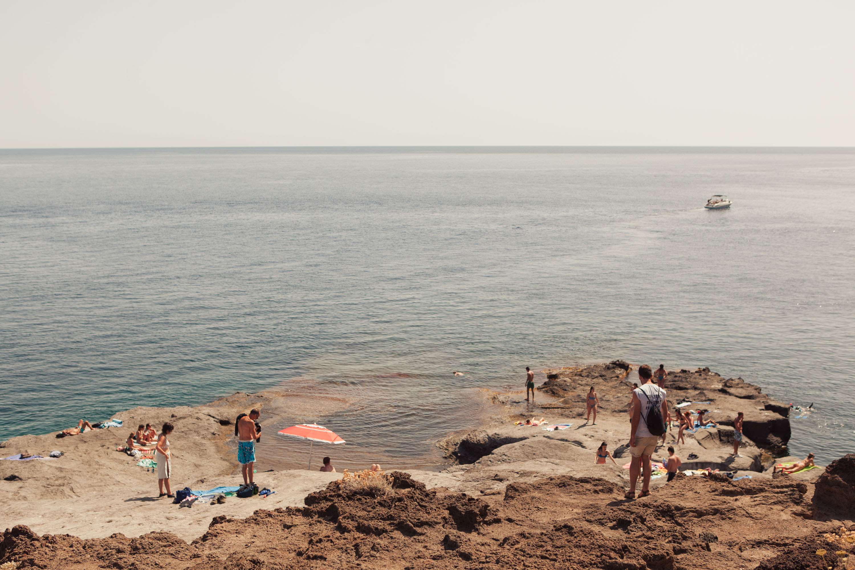 We emerge over the hill after a rocky scooter ride down from the main road to see a dreamy Italian summer scene: 20 or so people sprawled out over the rocks, some reading or dozing lazily, others snorkelling around the water’s edge, an umbrella jammed into a rock’s crevice.